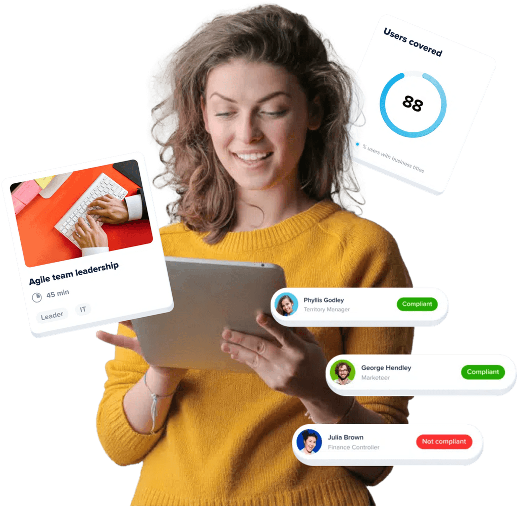 Seamlessly enroll users with SSO and API integrations, automate training paths, and empower your people with dedicated training, from product knowledge, to sales training, compliance essentials, and even upskilling development paths.