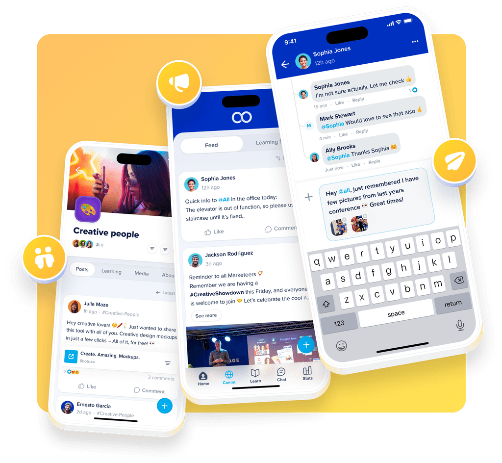 - Consolidate your tool stack by bringing communication, learning and people development together in one app.