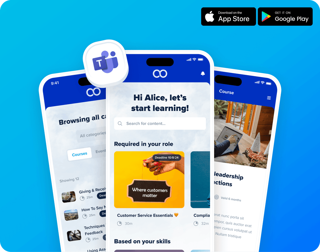 Take training on-the-go with access to the eloomi app on Android and iOS. Our all in one learning management system is also available in Microsoft Teams to help you deliver a seamless learning experience.