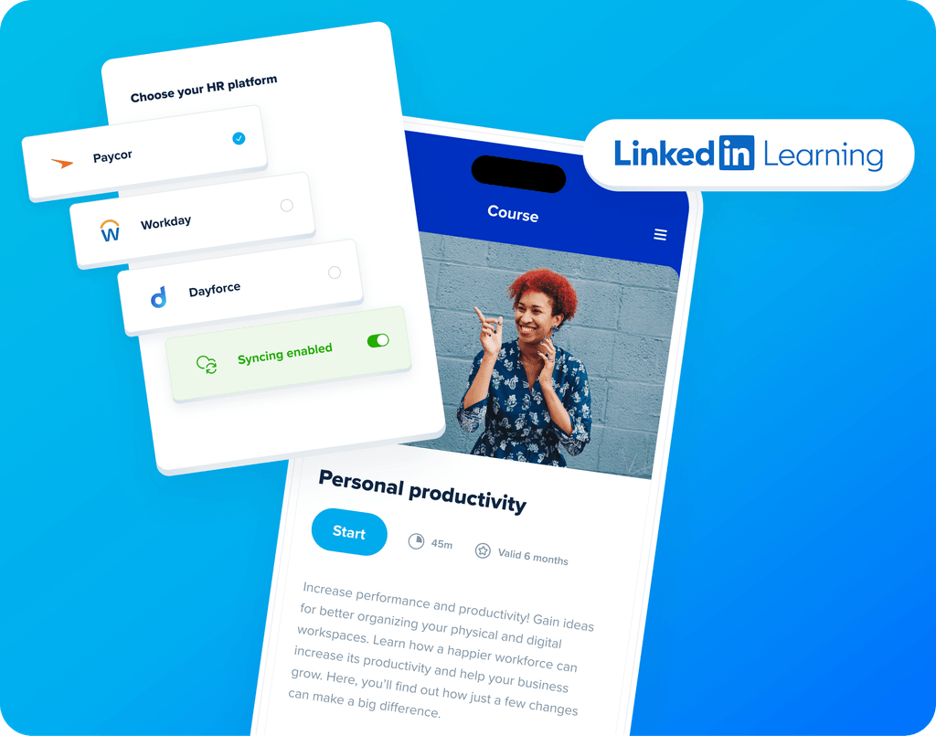 The built-in integration with LinkedIn Learning means your people can do all of their LinkedIn Learning training on eloomi.