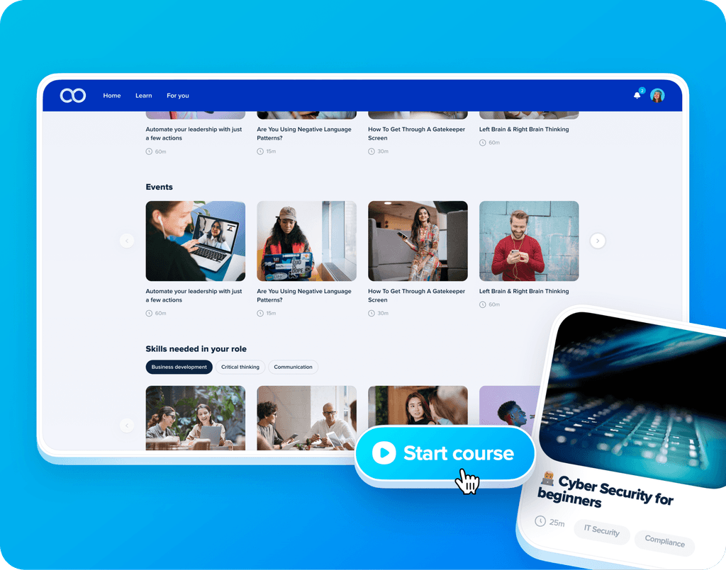 From compliance to onboarding, from skills-building to external training, eloomi L&D software will help you to solve any learning challenge.