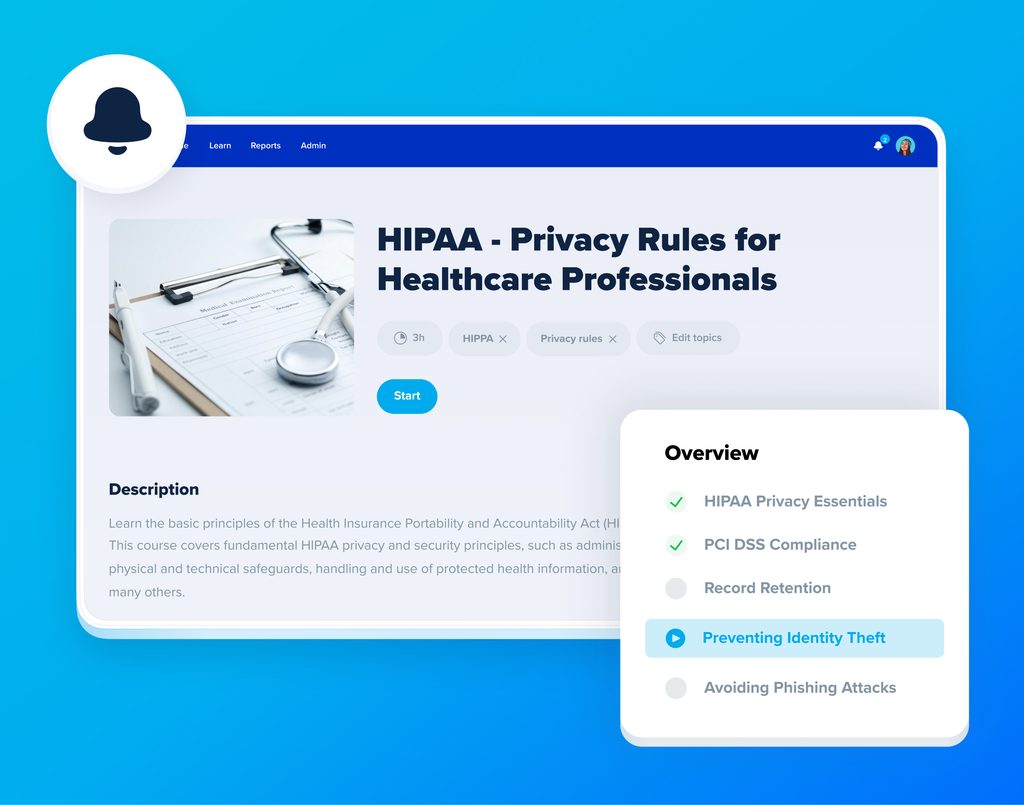 Compliance is paramount for healthcare institutions managing sensitive patient data and facing stringent regulatory demands. Ensure strict adherence to compliance standards by equipping healthcare professionals with the skills for secure data management and comprehensive compliance protocols, with a healthcare learning management system to prevent costly fines and reduce errors.